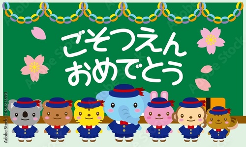 © komidori, Fototapeta premium 動物たちのごそつえんおめでとうとガーランド