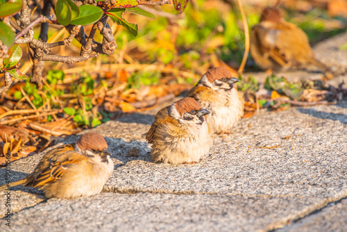 Fototapeta premium 可愛くて癒される公園にいた沢山の野生の雀