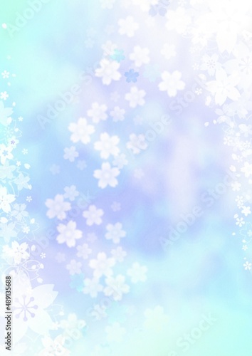 Fototapeta premium 一面に花が咲く水色の背景イラスト