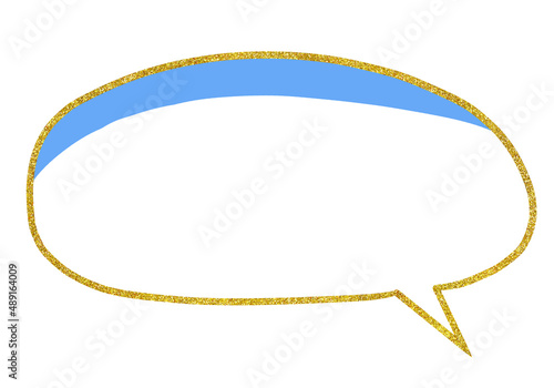 © 黛仲 栞帆, Fototapeta premium 手描きの金色の丸い吹き出し 青の影