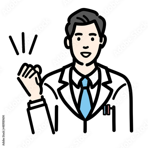 © トワトワ, Obraz premium 笑顔でガッツポーズをしている白衣を着た若い男性医師