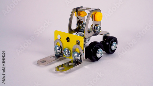 Obraz premium ボルトとナットで作ったおもちゃのフォークリフト