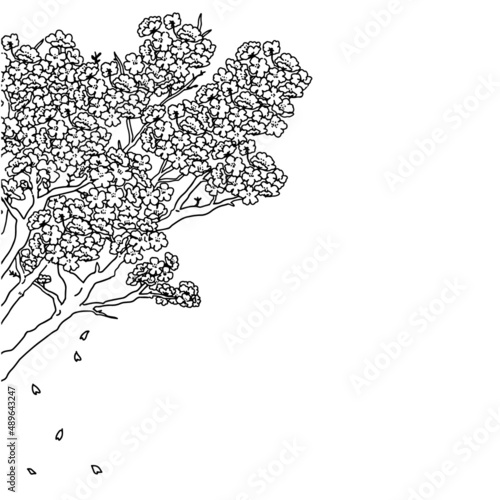 © MariMizuta, Obraz premium 桜の花びらが散る線画のイラスト
