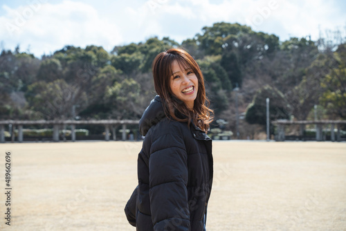 © peach100, Fototapeta premium 公園で遊ぶ女性