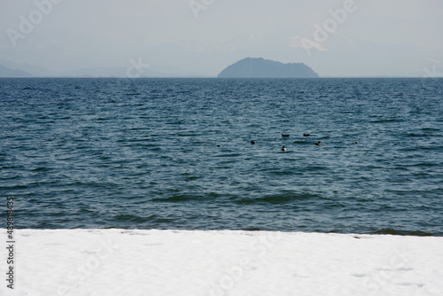 Obraz premium 冬の琵琶湖 竹生島遠望 滋賀県高島市今津町