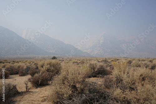 © Bashi, Fototapeta premium カリフォルニア州 シエラネバダ山脈 ホイットニー山 山火事のかすみ