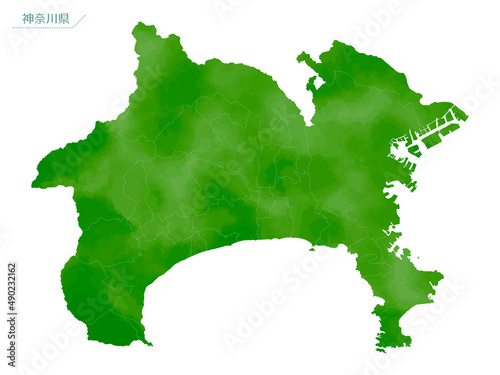 © ころころ, Fototapeta premium 水彩風の地図 神奈川県