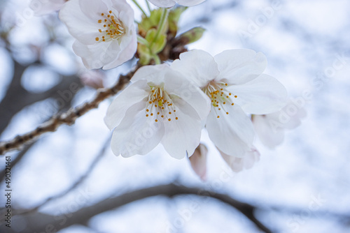 © bluebellivy, Obraz premium 満開の川沿いのソメイヨシノの花 背景 風景