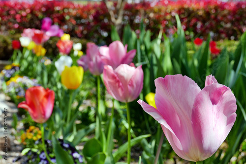 Fototapeta premium 赤やピンクのカラフルなチューリップ