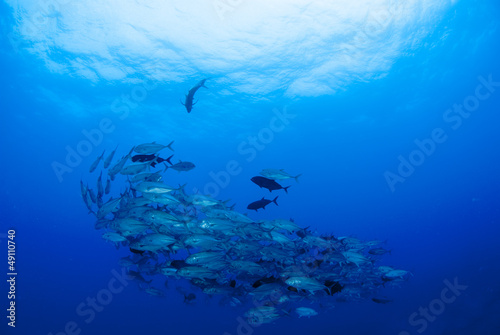 Obraz premium 海底のギンガメアジの群れ