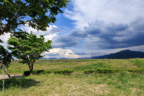 © Nori Yone, Obraz premium 千曲川 堤防内の景色