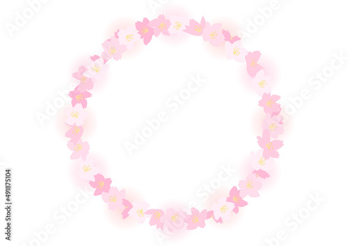 Obraz premium 桜の花の円形フレームイラスト