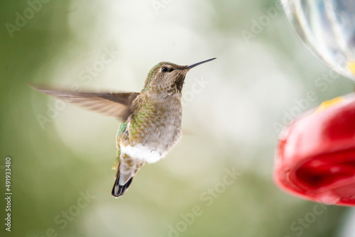 Fototapeta premium ハチドリ 冬の ハミングバード 可愛い 飛ぶ 小さい 鳥 野鳥観察 雪