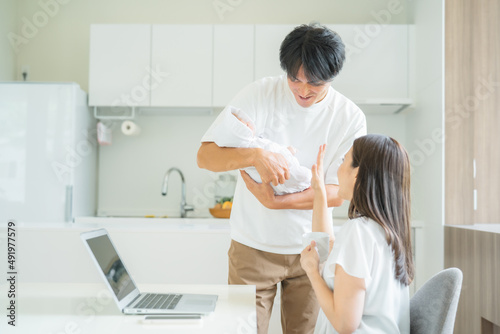© buritora, Fototapeta premium テレワークする女性と男性