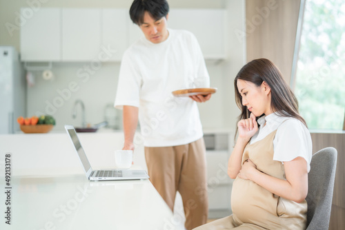 © buritora, Obraz premium パソコンを見て考える妊婦と男性