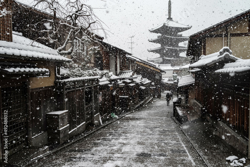 © satoru, Fototapeta premium 雪の京都・東山八坂通の風景