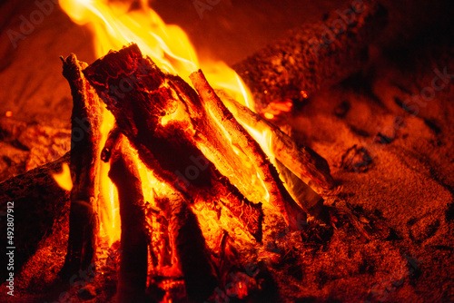 © 歌うカメラマン, Fototapeta premium 砂浜と焚き火