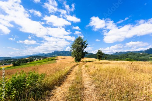 Obraz premium 北海道富良野、7月の麦畑・日本