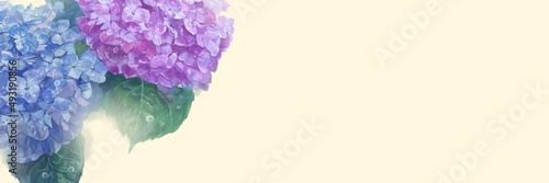 © NORIMA, Obraz premium 雨降る中輝く紫陽花のはなの水彩画イラストと色付き背景