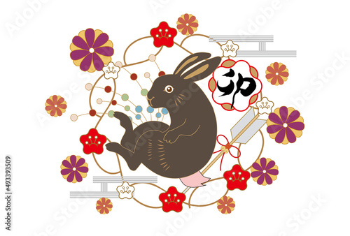 Obraz premium 2023年卯年年賀状テンプレート素材 うさぎ 正月 和風 テンプレート 年賀 正月 新年