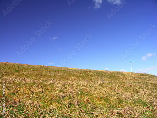 Obraz premium 歩行者と自転車の専用道路のある早春の江戸川土手風景