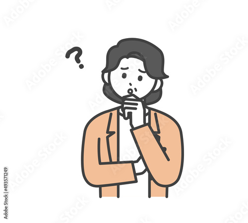 © こんざい, Fototapeta premium 女性社員が悩んでいる表情のイラスト素材