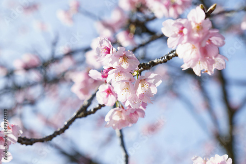 Obraz premium かわいいい薄ピンクの花びらの綺麗な桜