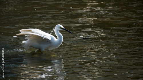 © sephoto, Fototapeta premium 백로 한 마리가 시냇가에서 물고기를 사냥하는 날렵한 연속 동작02