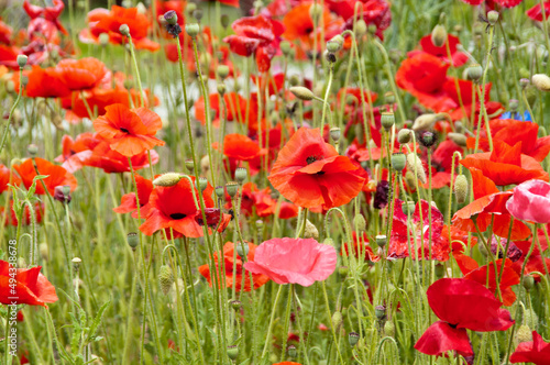 © kinpouge, Fototapeta premium 花が満開のポピー畑
