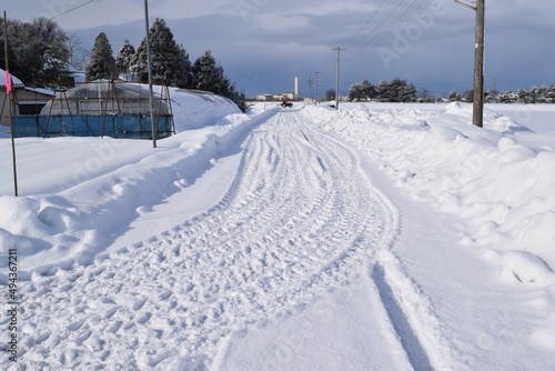 © FRANK, Fototapeta premium 雪道のわだち / 日本有数の豪雪地帯 山形県庄内地方