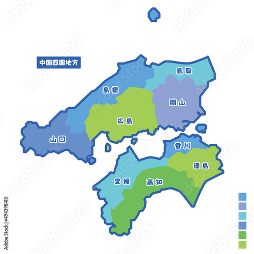 © suzumeclub, Obraz premium 日本の地域図 中国四国地方 雨の日カラーで色分けマップ