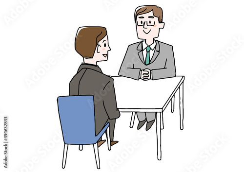 Fototapeta premium 女性社員に面談を受ける女性 コミカルな手書きの人物 ベクター、線画にカラー