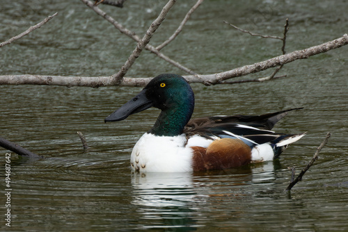 Obraz premium 首を少し上にあげて若干警戒するハシビロガモの雄