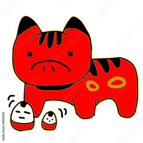 © ふなちぃ, Fototapeta premium 会津の民芸品のイラスト(赤ベコ、起き上がり小法師)