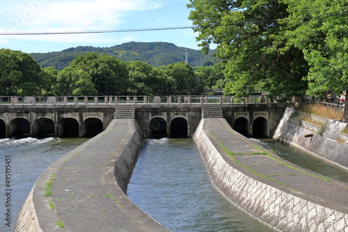 © yslab02, Fototapeta premium 酒津公園の水門と青空
