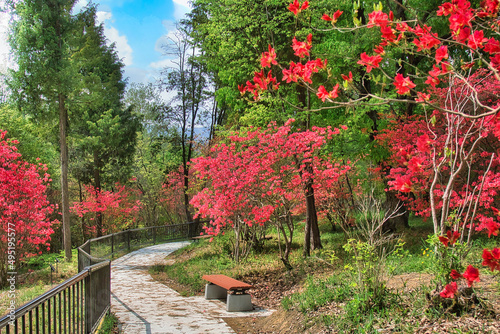 Obraz premium ツツジが綺麗な公園の遊歩道