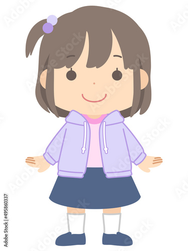 Obraz premium 笑顔の女の子のイラスト 長袖