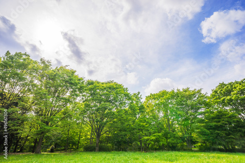 Fototapeta premium 新緑イメージ 若葉 木と緑 コピースペース 緑 葉 爽やか