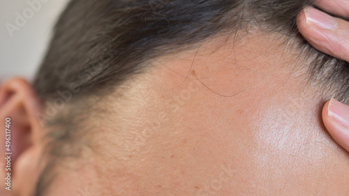 Obraz premium 前頭の髪の毛が薄くなってきている中年男性