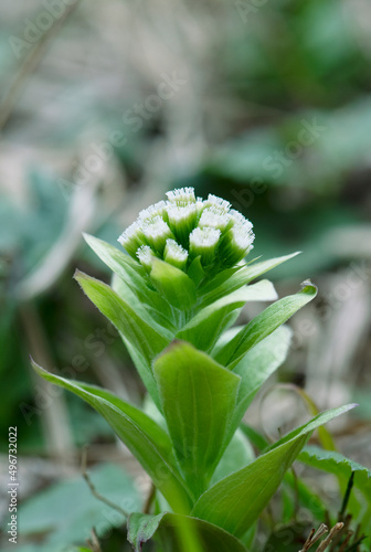 © Hirose Toshiyuki, Obraz premium 開花して伸び始めたフキノトウの小さい雌花_曇天縦1