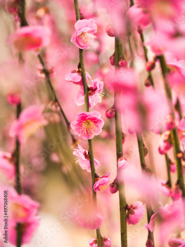 © fumoto-lab, Obraz premium 美しく咲いた枝垂れ梅の花