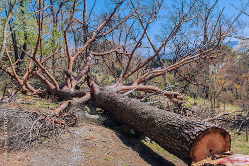 Obraz premium 切り倒された赤松の大木