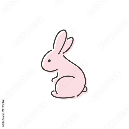 Obraz premium 横向きで座っているシンプルなピンクのうさぎの線画イラスト