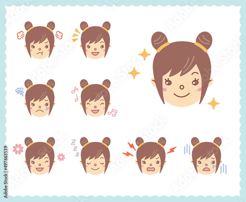 © MIKIKO, Obraz premium 女性の喜怒哀楽の感情 顔アイコン セット24