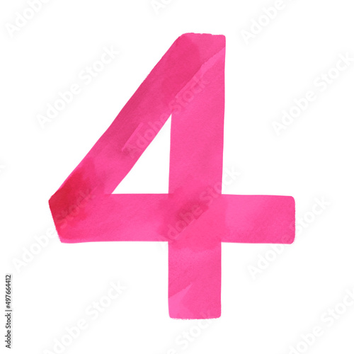 © 黛仲 栞帆, Obraz premium 水彩素材 数字 4 ピンク