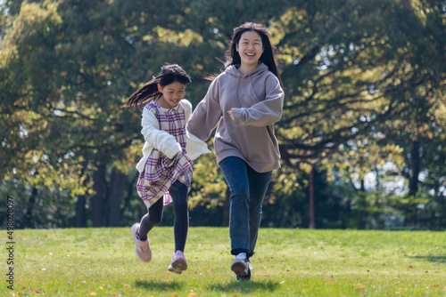 © zheng qiang, Fototapeta premium 春の公園で遊んでいる子供姉妹の姿