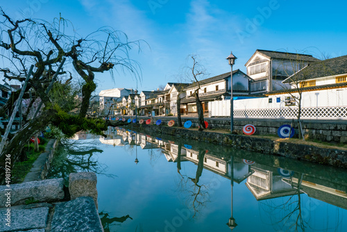 Obraz premium 岡山県の倉敷美観地区、倉敷川と町並み