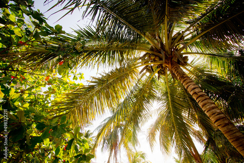 Obraz premium カリブ海に浮かぶ島の椰子の木に囲まれた漁村