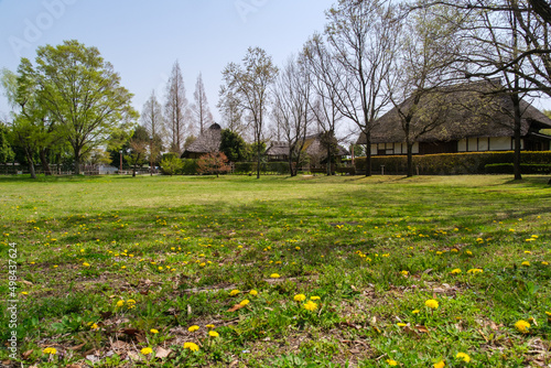 © Snoopy walk, Obraz premium 茅葺屋根と庭