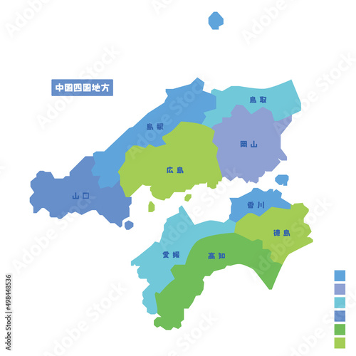 Obraz premium 日本の地域図・日本地図 中国四国地方 雨の日カラーで色分けしてみた